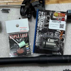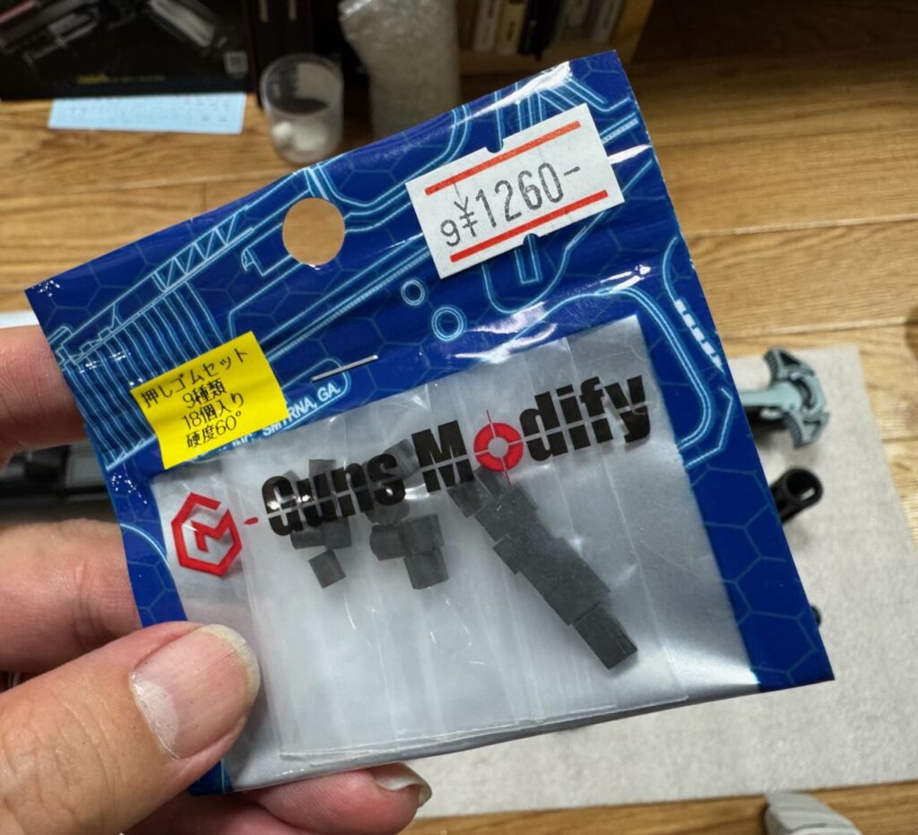 とりあえず形や硬さが異なるいろいろなものがセットになってる Guns Modify の押しゴムセットを買ってきて、適当な押しゴムを選んでホップレバーの下にセットする。しかしこんな小さなゴムで 1,260円とは。大量に売れるモノじゃないから高くなるのは当然とは言え、エアガン関係のパーツはどれも高いなあ。