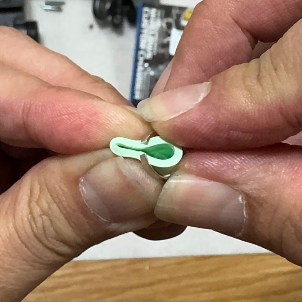 Maple Leaf のクッションゴムチューブには形状を安定化させるためと思われる金属リングが付属しているのでゴムチューブ後端のミゾにはめておく。