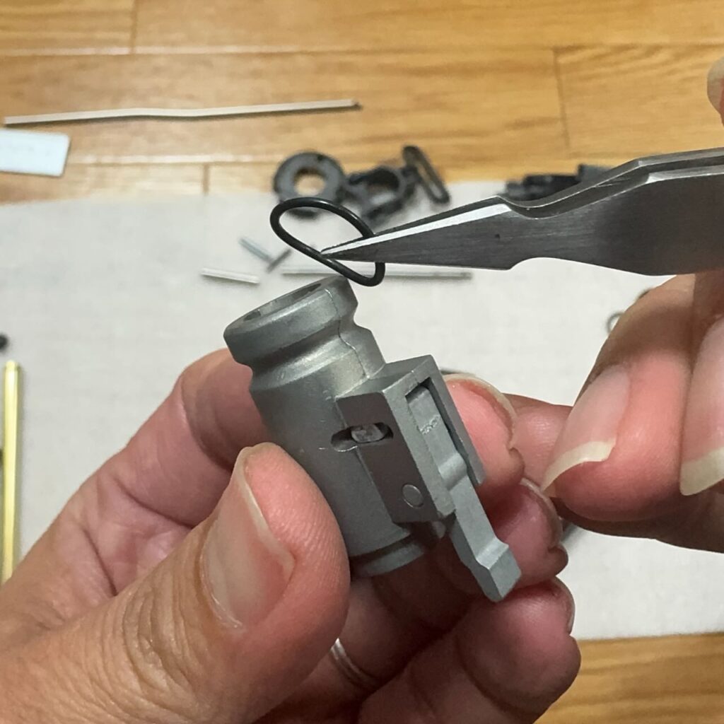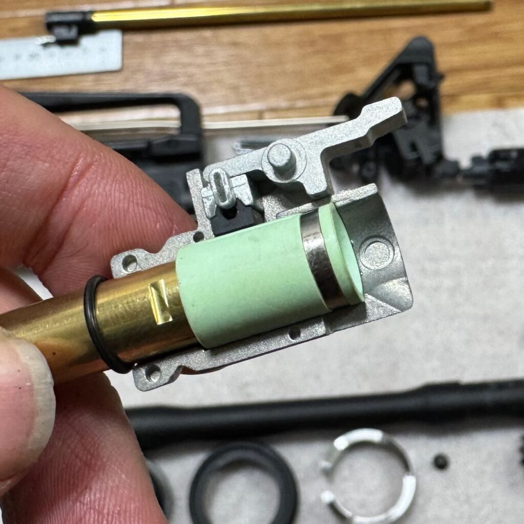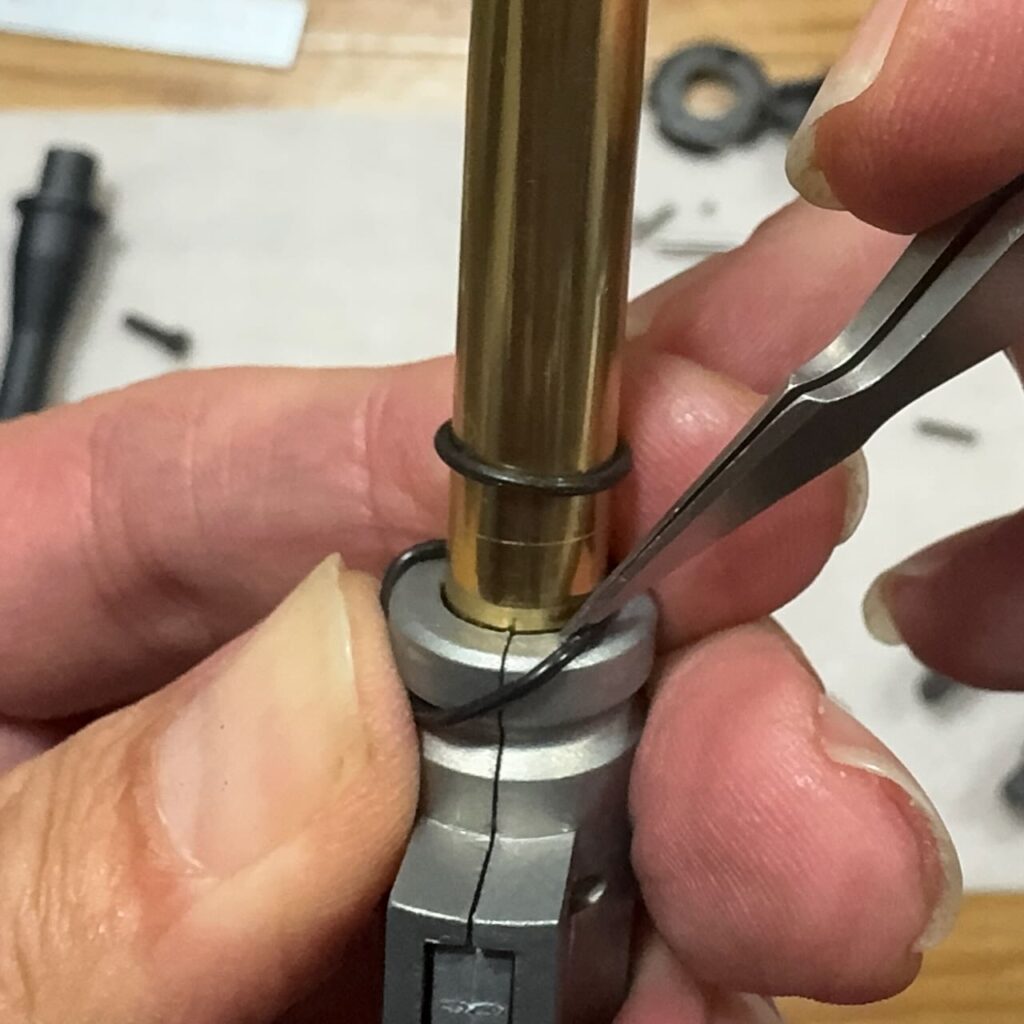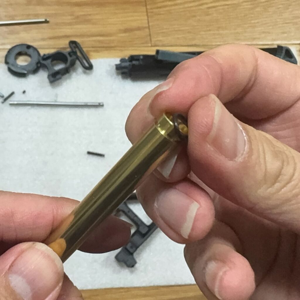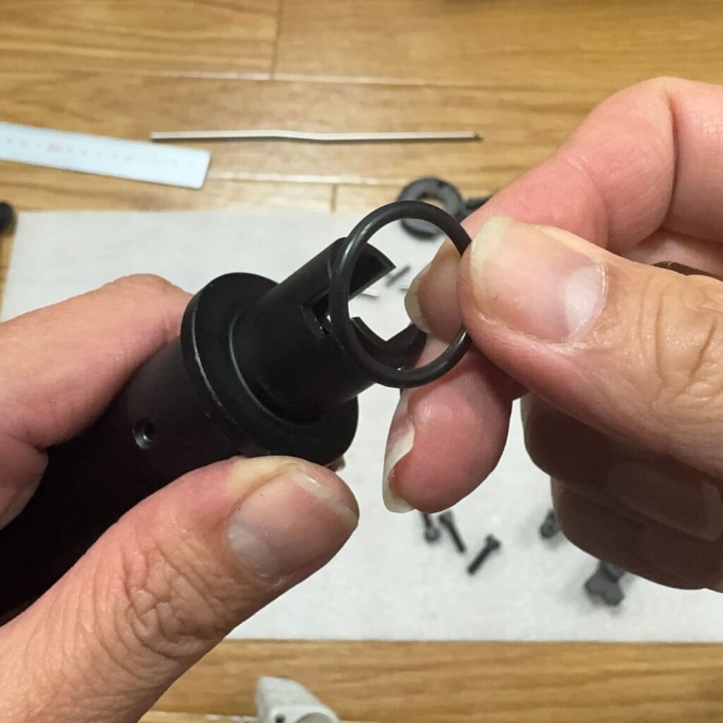 最後に、インナーバレルの後端近くにはめてあったOリングをチャンバーへぴったり寄せてスキマをふさぐ。