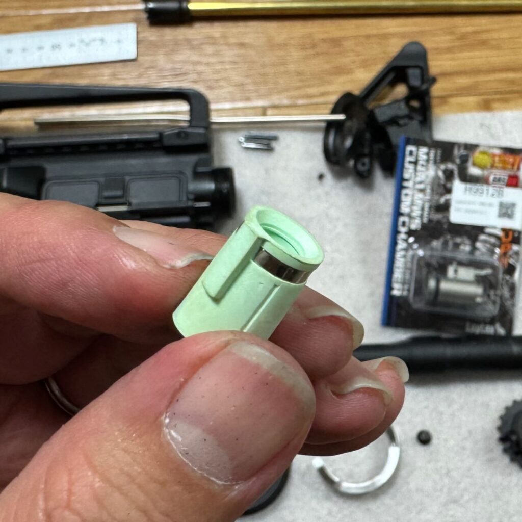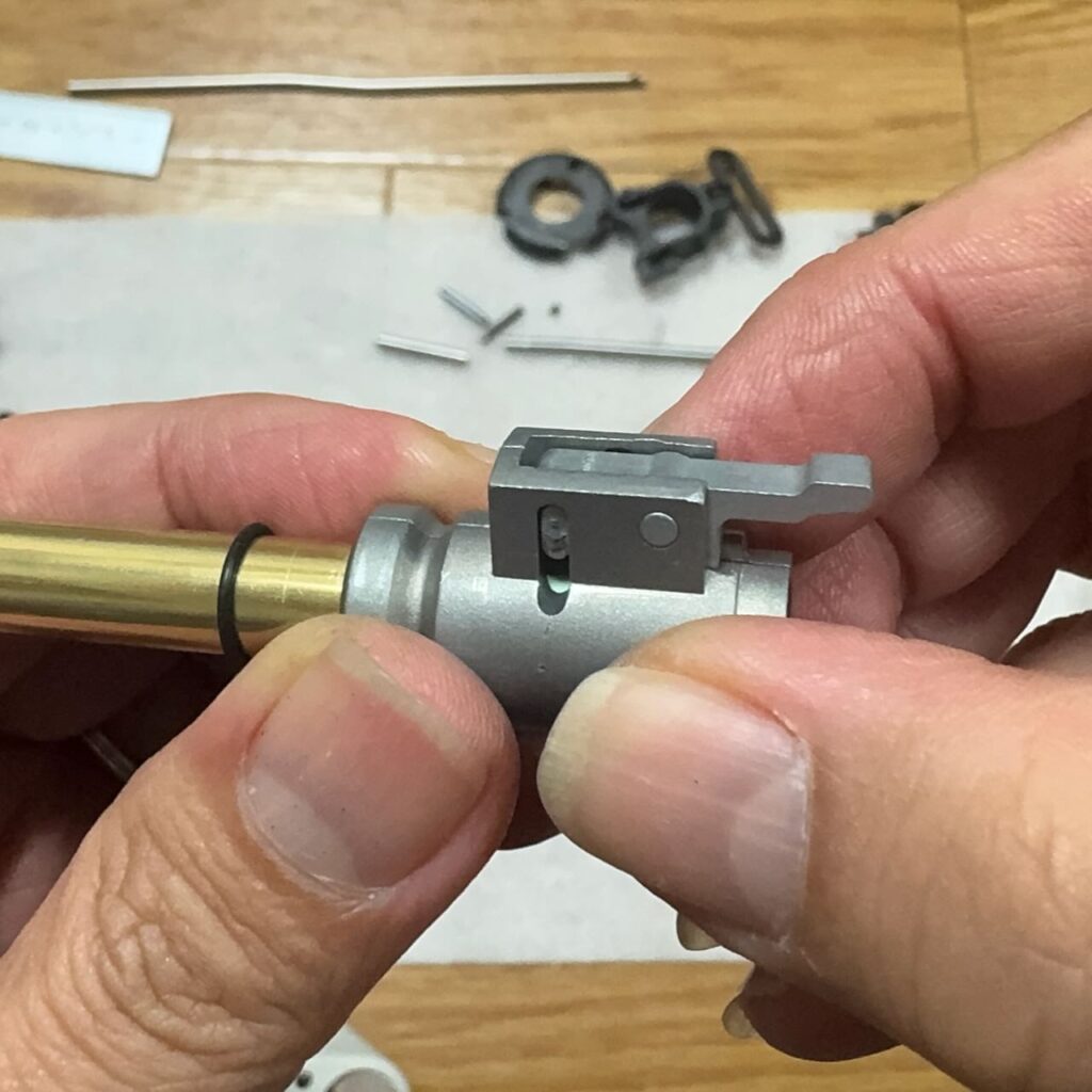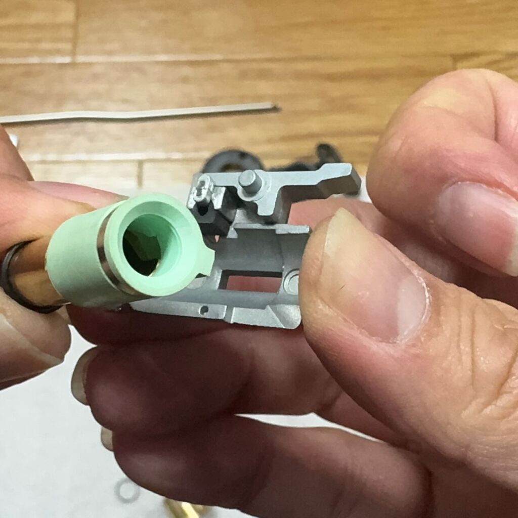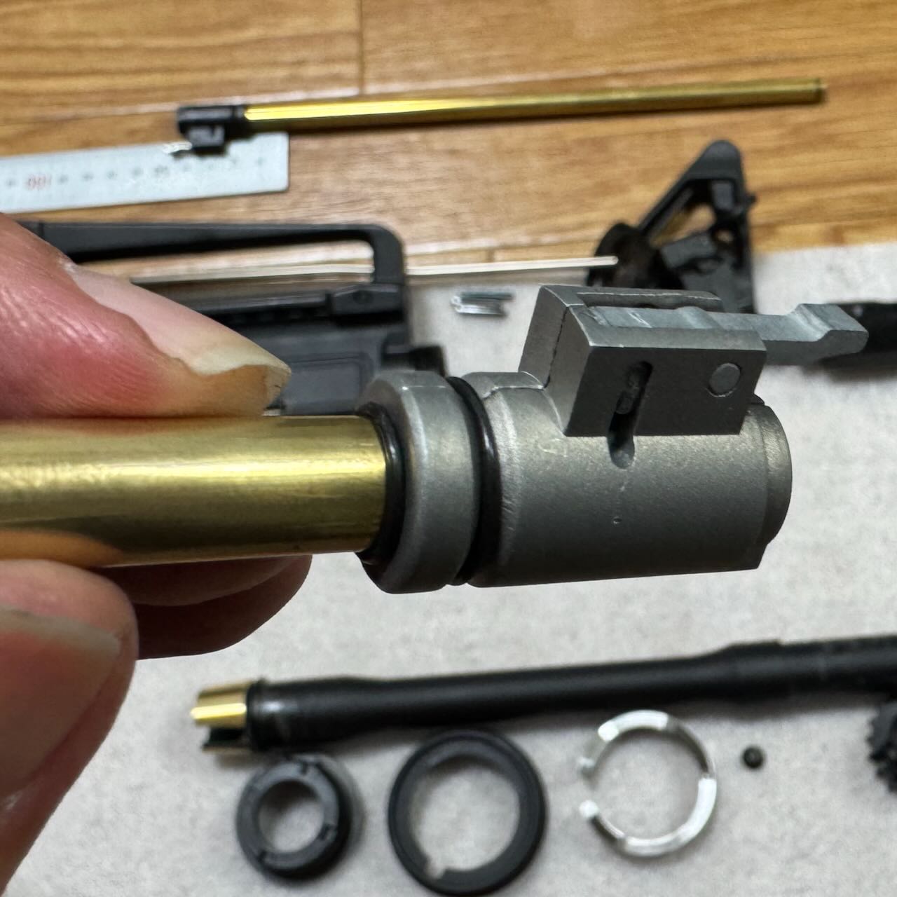 最後に、インナーバレルの後端近くにはめてあったOリングをチャンバーへぴったり寄せてスキマをふさぐ。