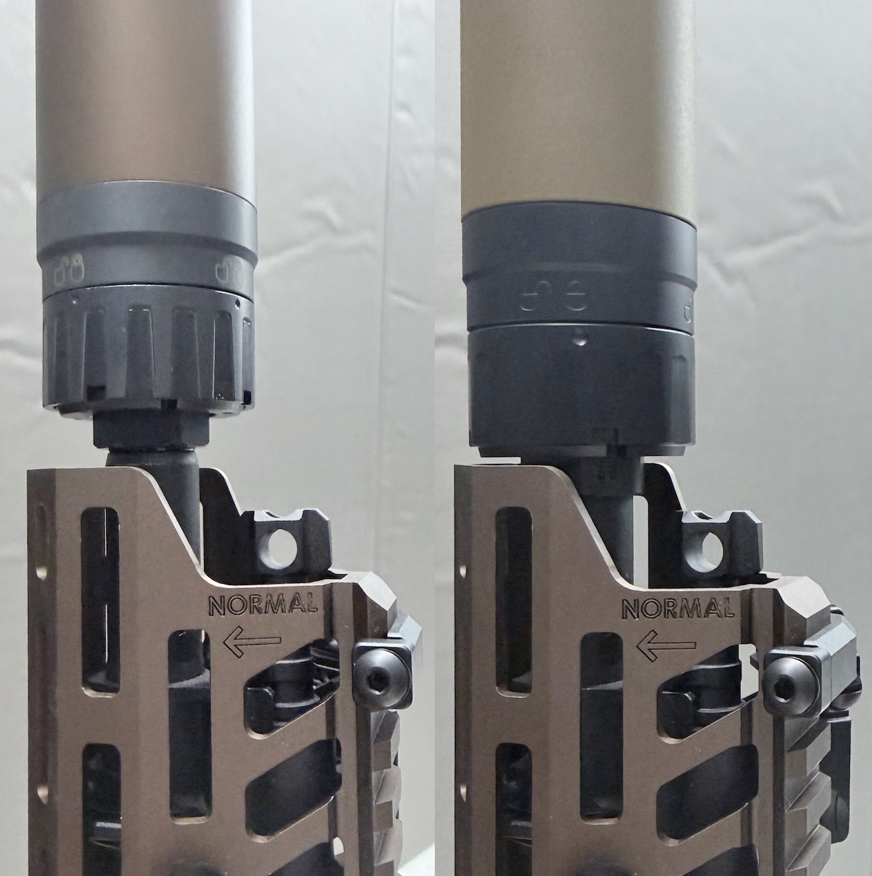 なおこのサプレッサーは、サプレッサー→ハイダーは正ネジ、ハイダー→アウターバレルは逆ネジ、で取り付けるようになってる。アウターバレルにハイダーを取り付けてから、サプレッサーを取り付けようとすると、サプレッサーを締める方向がハイダーを緩める方向になってしまうのでうまく取り付けできない。まず、サプレッサーにハイダーをねじ込んでロックをかけてから、ロックを外さないようにまとめてアウターバレルにねじ込むという順序にした方がいい。それでもロック機構が弱いみたいで、締め込んでる途中でロックを外してしまいサプが緩んでしまい、あわててサプを締め直したらハイダーが緩んで・・・ヤギさん郵便みたいな状況に。