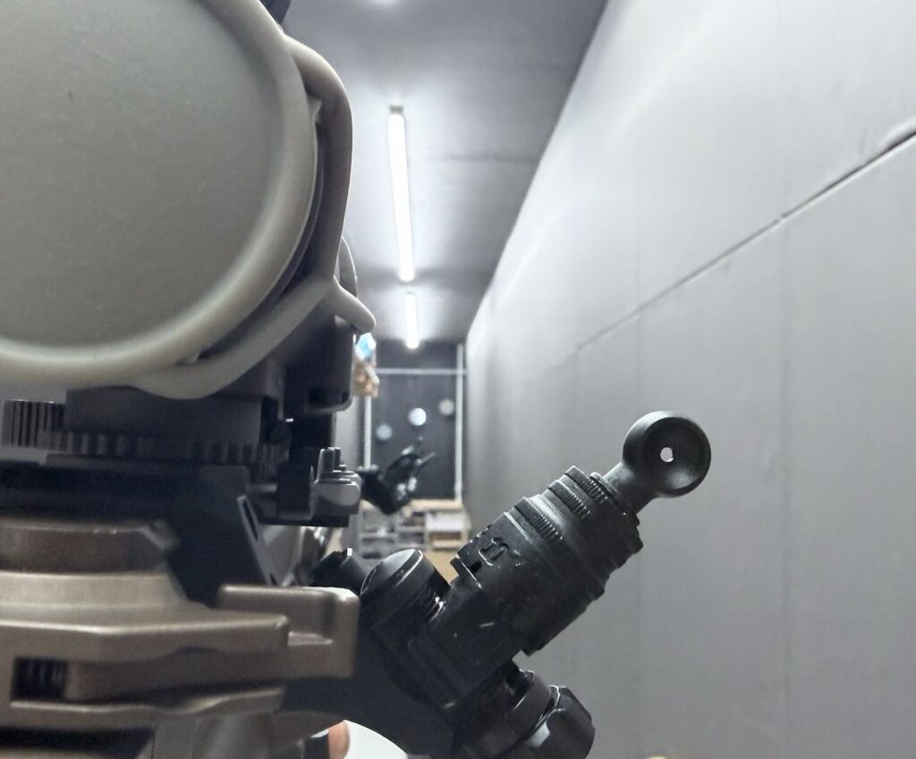 これもかなりいい感じ。でも実物はどうなのか知らないけど、ELCANのレプリカはアイレリーフが短くてこの写真のようにかなり後ろの方に取り付ける必要がある。そうするとリアサイトの取り付け位置が前寄りになって使いにくくなってしまうのが残念。