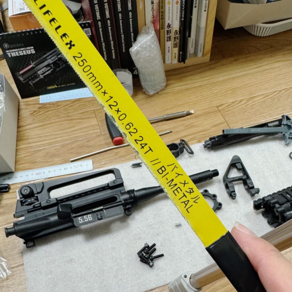 ここでロアフレームと結合して、BB弾を試射して確認。ホップ、インナーバレルとエアガンにとって重要なパーツを交換してるので、まともに飛んでくれるのかどうかドキドキ。