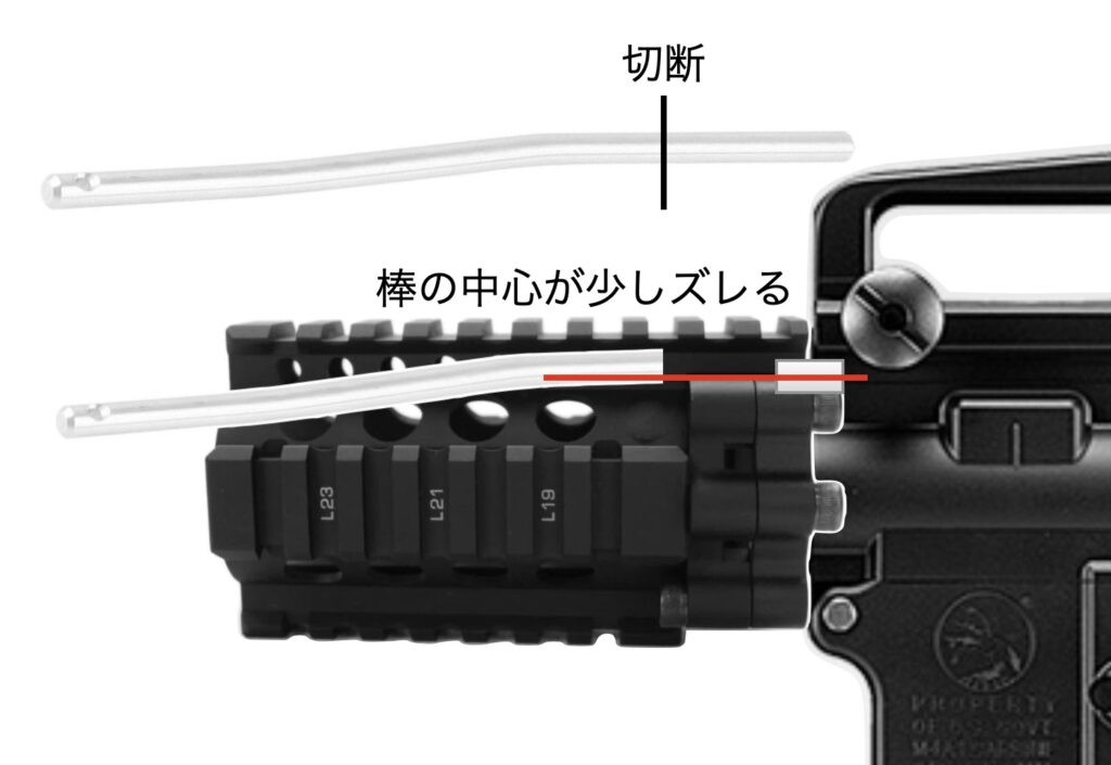 ハンドガード基部の位置合わせ用に付属している短い棒にも問題が
