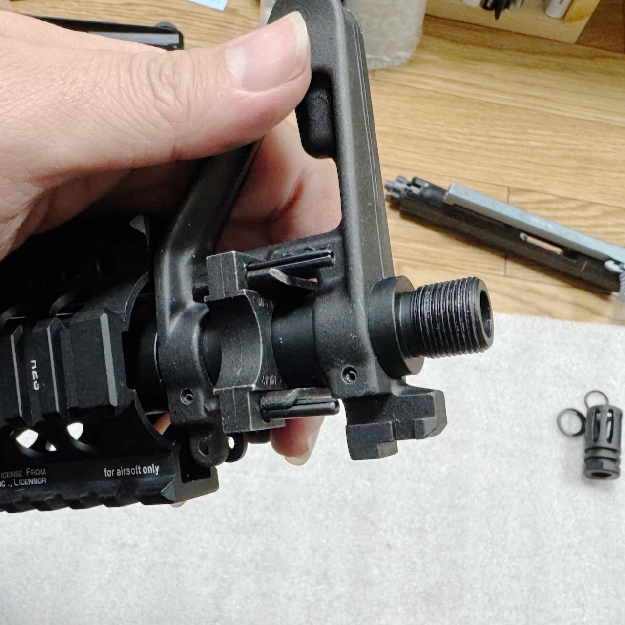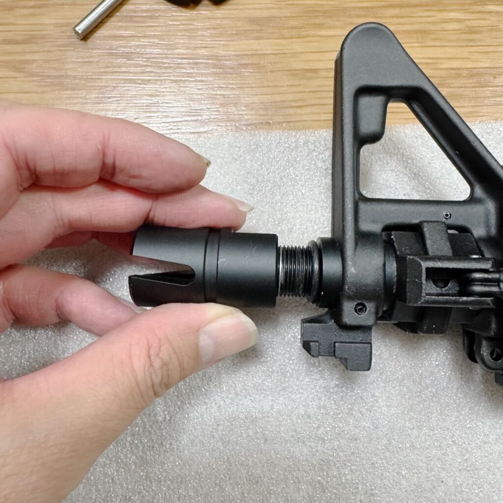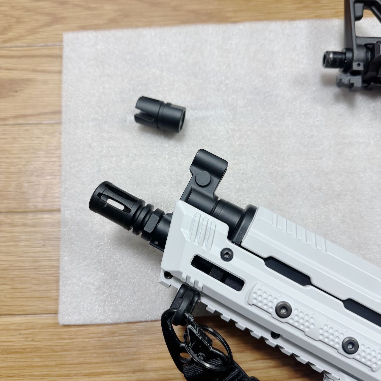 しかたなく、Oリングだけ移植してフラッシュハイダー ワッシャーなしで取り付けた。しかし、気にしなければいいレベルではあるものの、気づいてしまっているので気になる。気になるなあ。オモチャ風味強め。