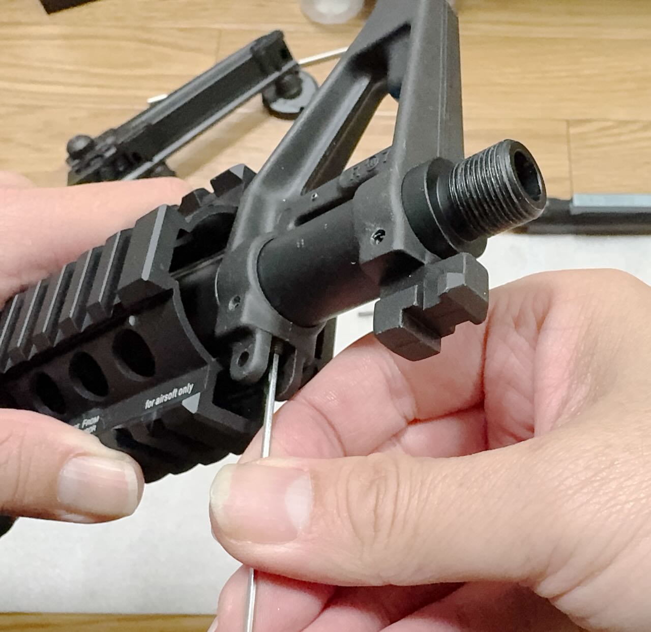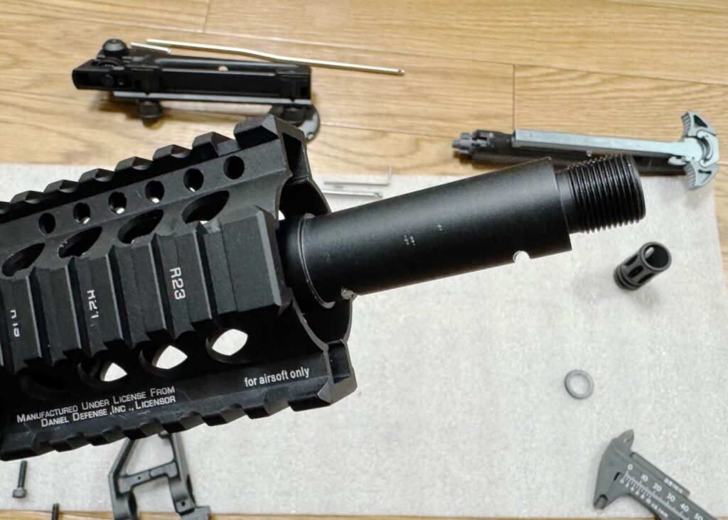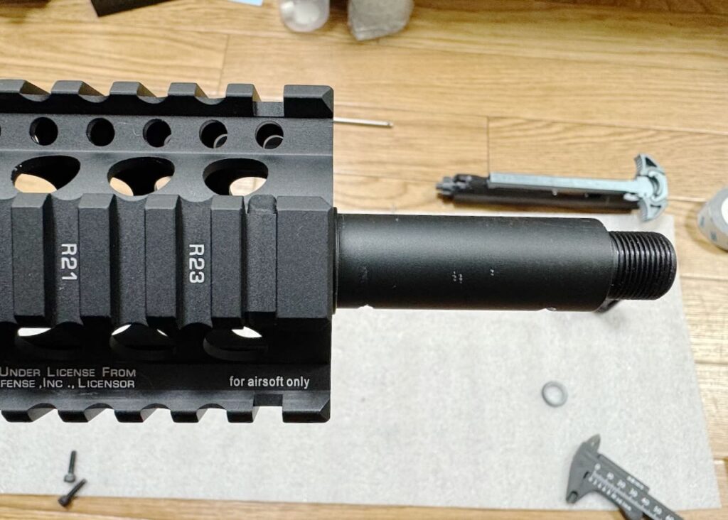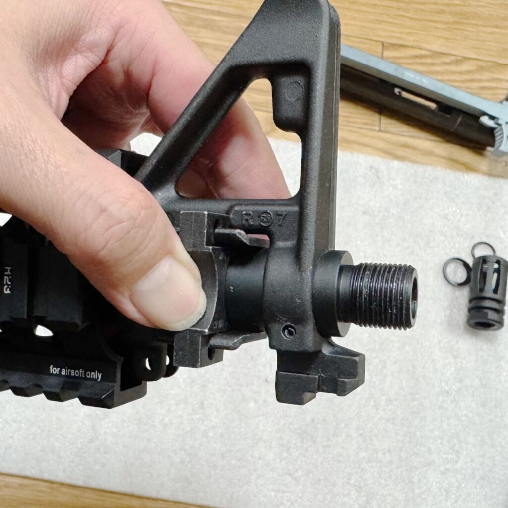 しかたなく、Oリングだけ移植してフラッシュハイダー ワッシャーなしで取り付けた。しかし、気にしなければいいレベルではあるものの、気づいてしまっているので気になる。気になるなあ。オモチャ風味強め。