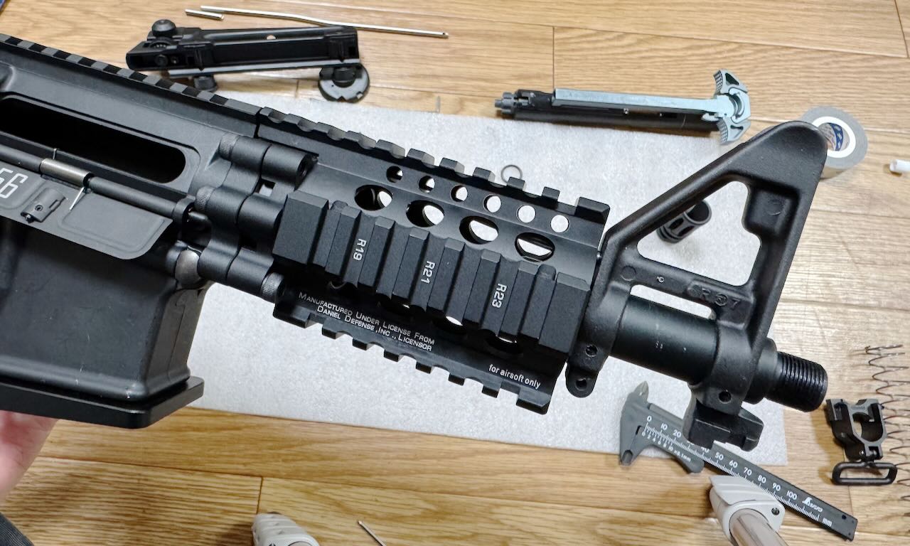 東京マルイ M4A1 カービンをベースに DANIEL DEFENSE タイプの4インチショートハンドガードを使ったコンパクトライフルを作るぞ。