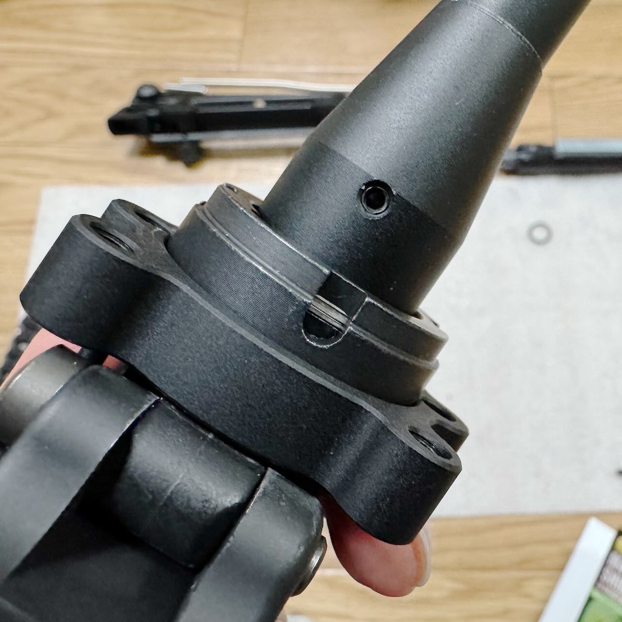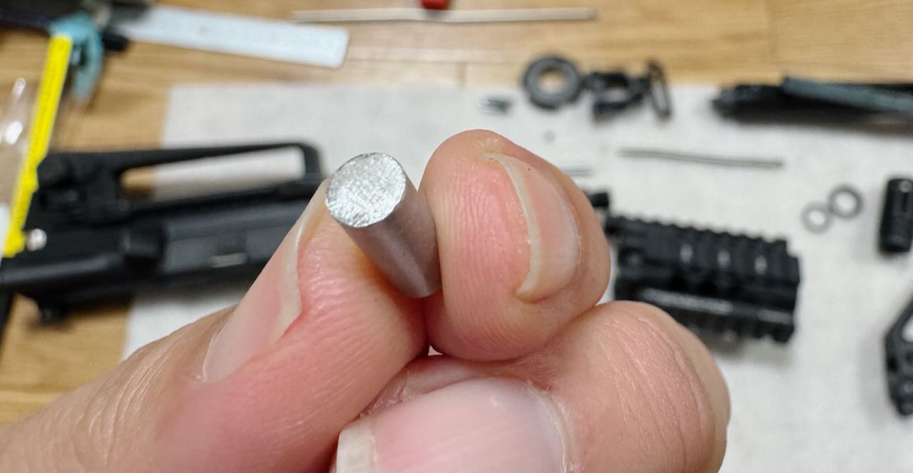 位置固定用の棒が少し長くてアッパーフレームとハンドガード基部の間に隙間ができてしまう。1mmくらい短くする。