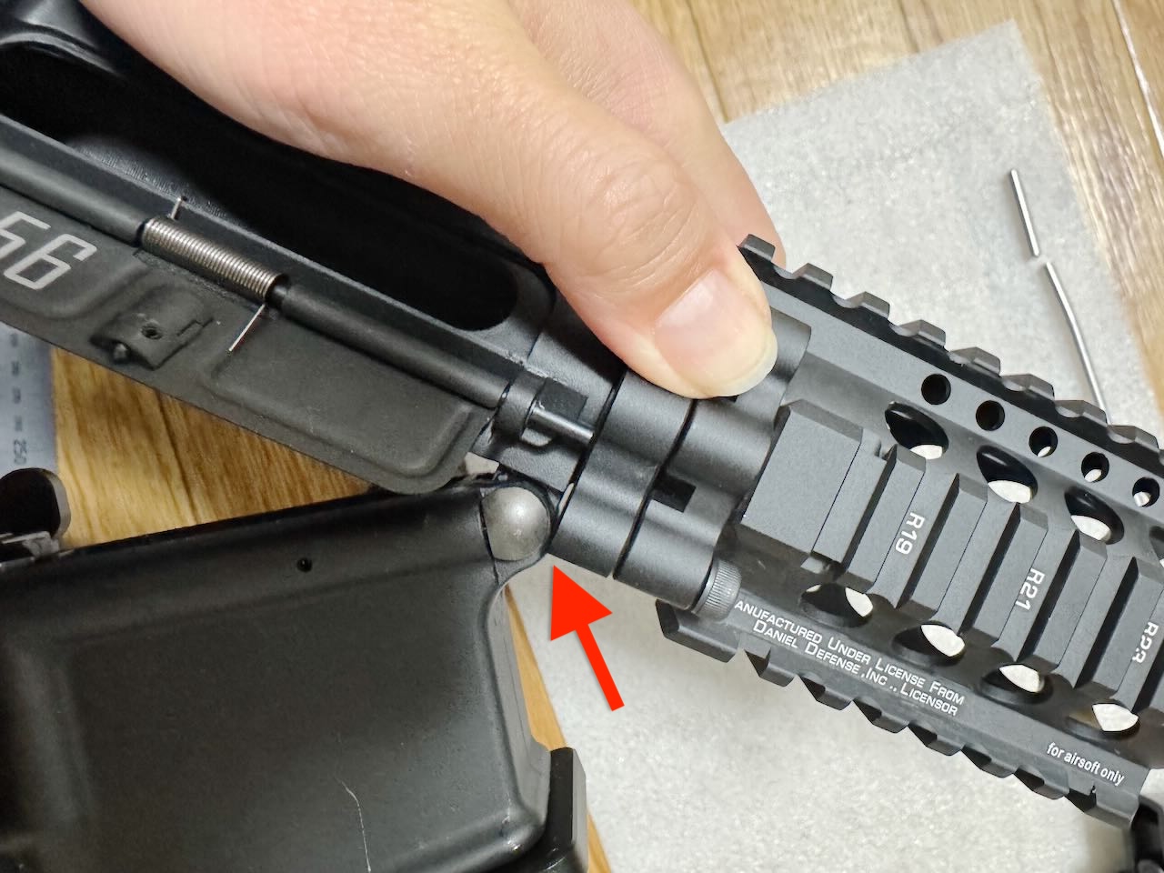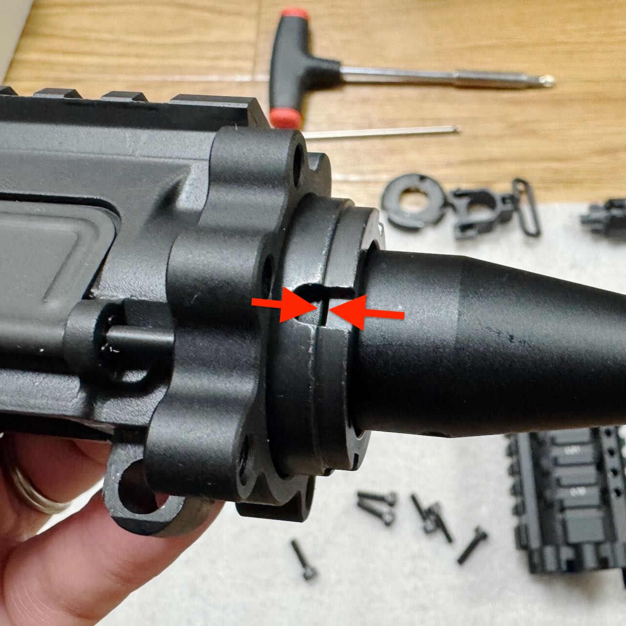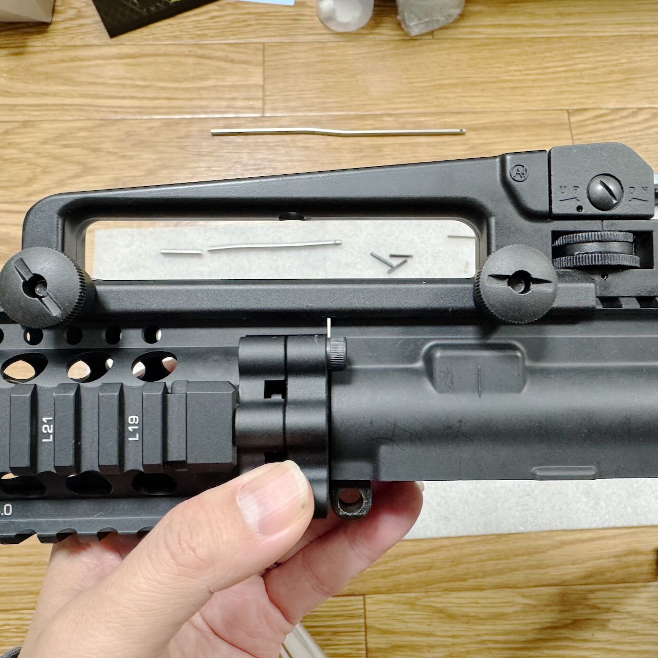 ハンドガード基部の位置合わせ用に付属している短い棒にも問題が