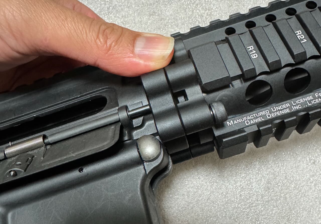 とはいえ、フレームからハンドガードにまたがるように何かを取り付けることはあまり考えられない(テイクダウンが面倒になる)から、ピカティニーレールとしての連続性はそんな気にしなくていいんだけどね。