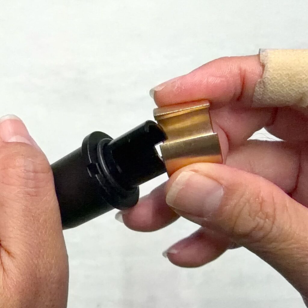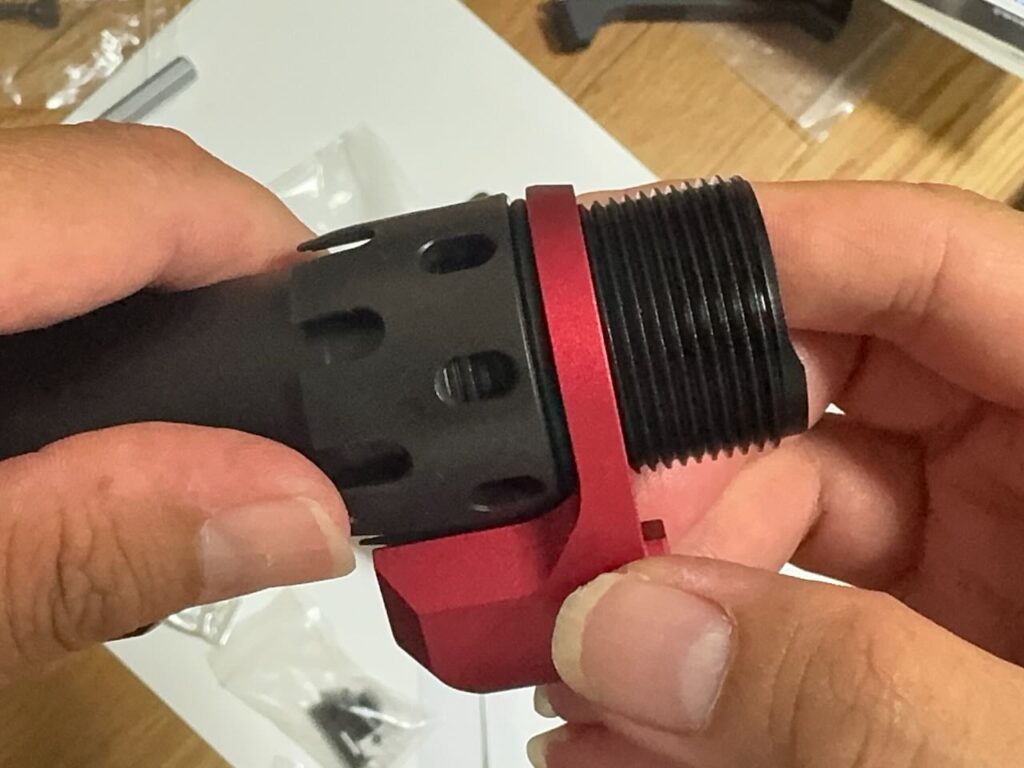 アウターバレル後方に G&P CNC バレルコレット のOリング、バレルコレットの順で挿す。アウターバレルとバレルコレットの切り欠きを合わせる。
