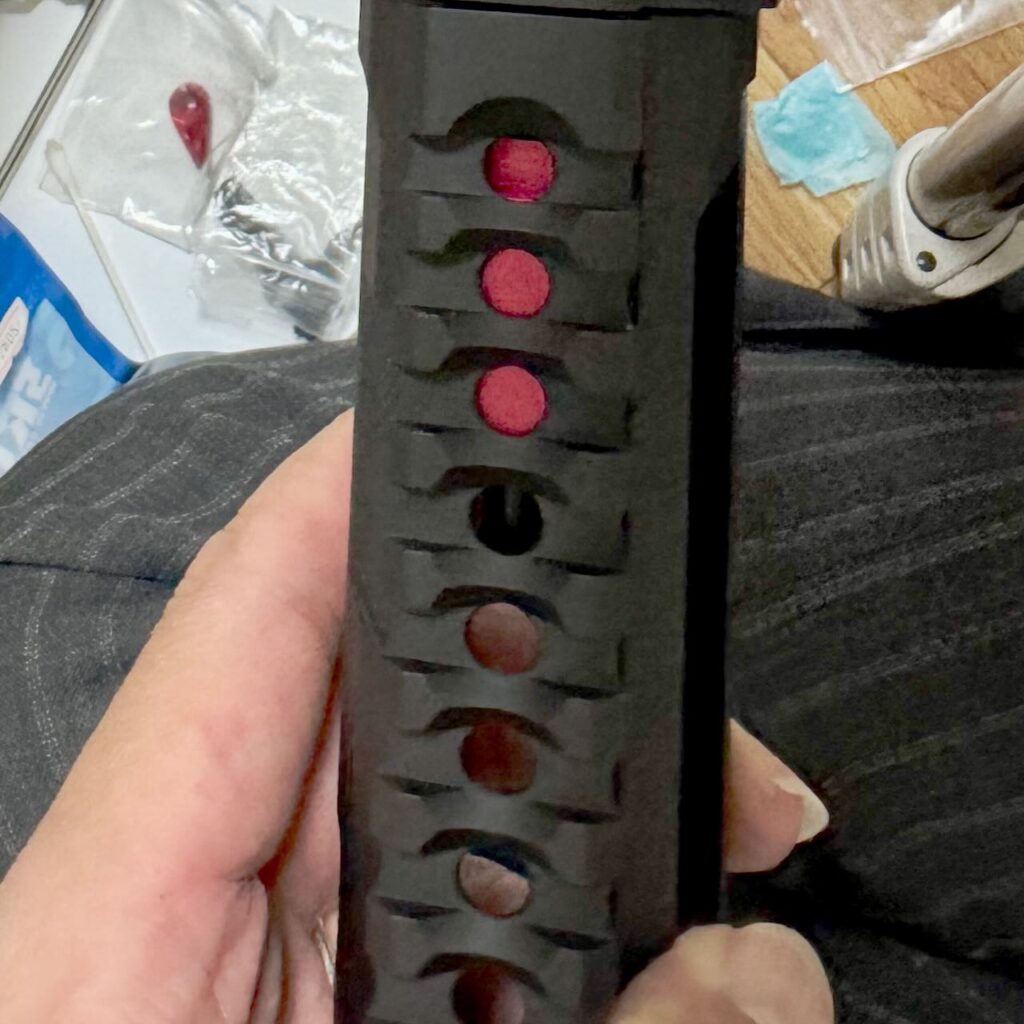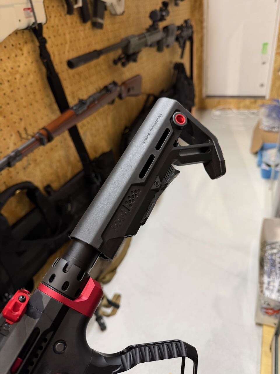 当初は Strike Industries の Advanced Receiver Extension REDと Pit Stock Red の組み合わせにしようかと思ったけどあまりにも赤要素が大きくなりすぎるとうるさい感じがしそうでやめた。