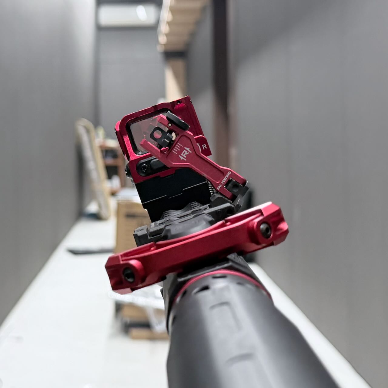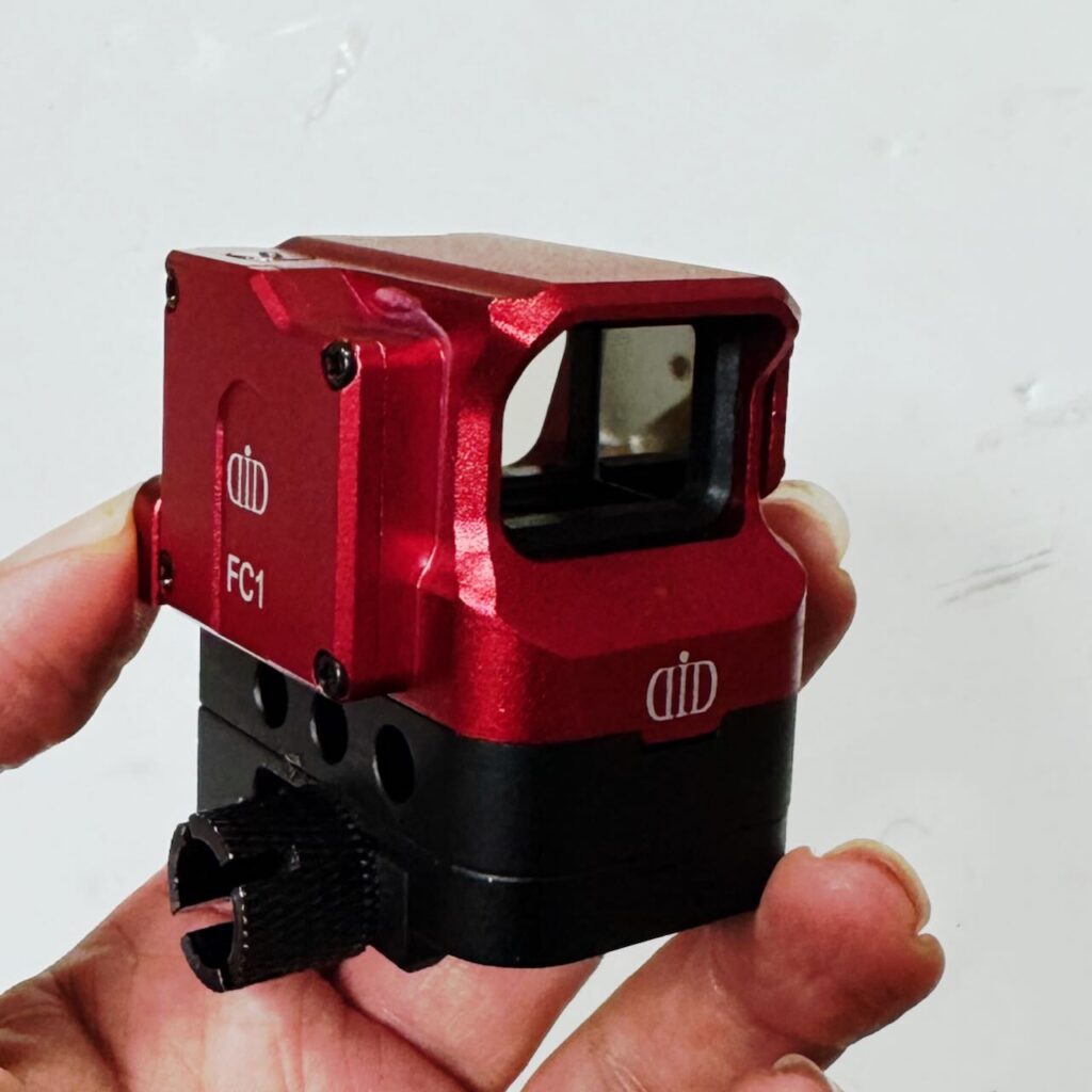 DI Optical社のFC1ドットサイトのレプリカ。小ぶりなメタリックレッドのボディがいい感じ。