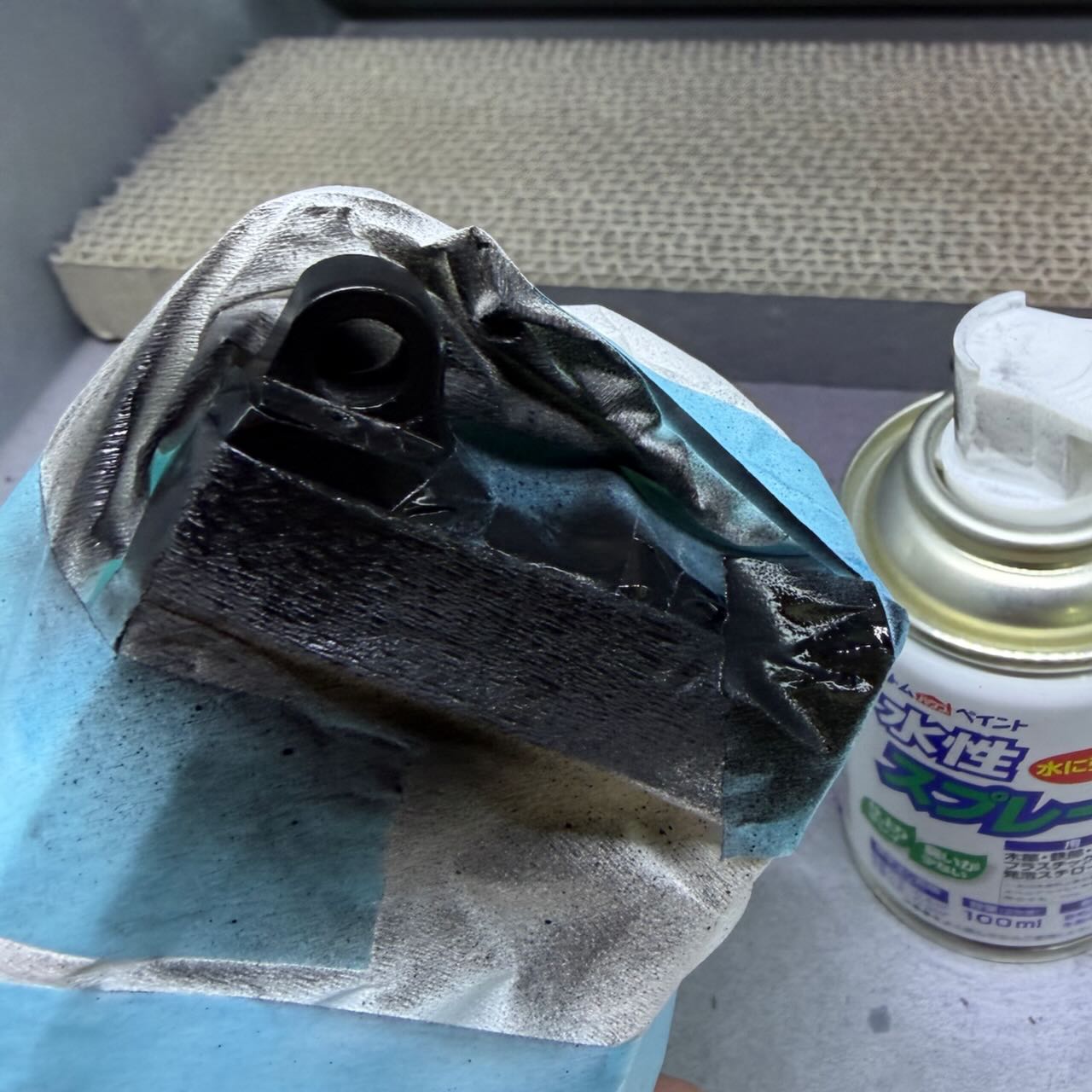 削ったらつや消し黒で塗装してピボットピンを取り付け。バッチリ。イエーイ