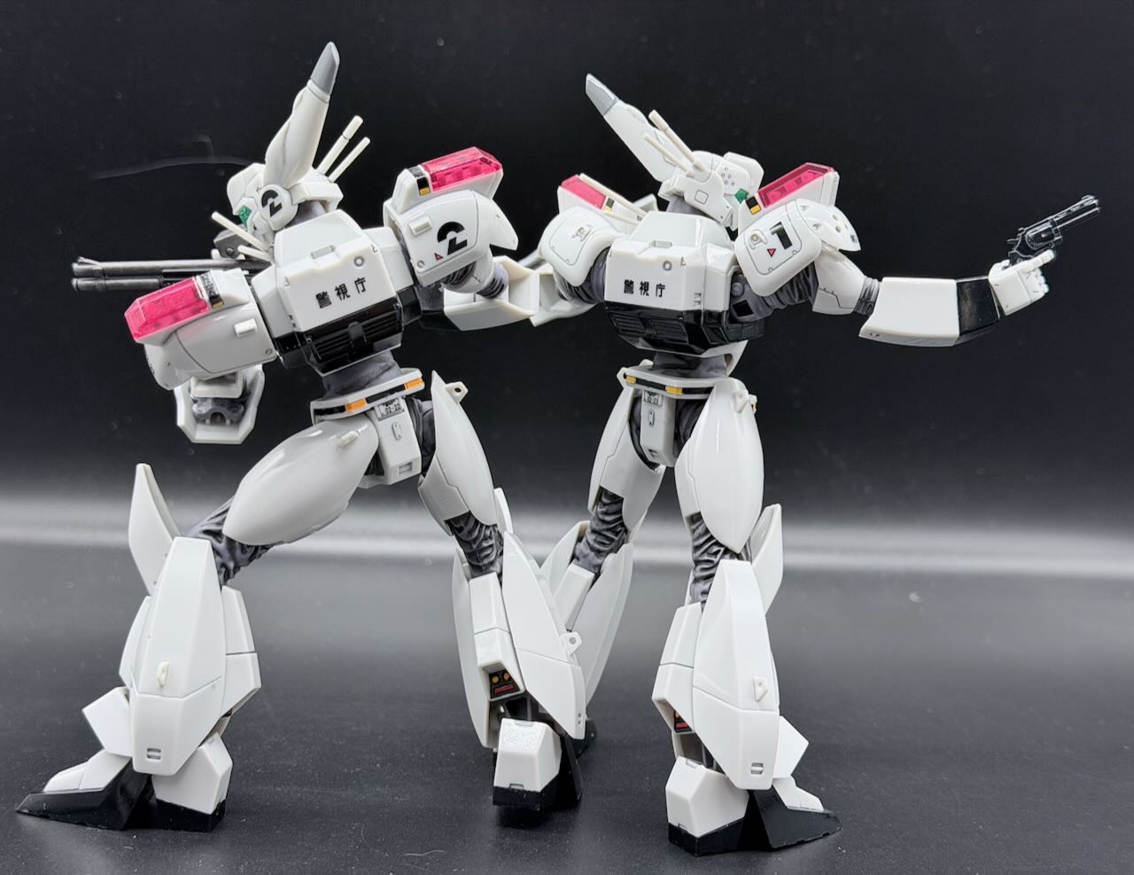 ピースメーカー、ヴァリアントは正式車両なのでイングラムと同じく胸部中央に金の桜の代紋が輝く。いかにも「警察車両」って感じで気分が上がる。桜の代紋は金色で塗装済みのパーツが付属するので楽ちん。