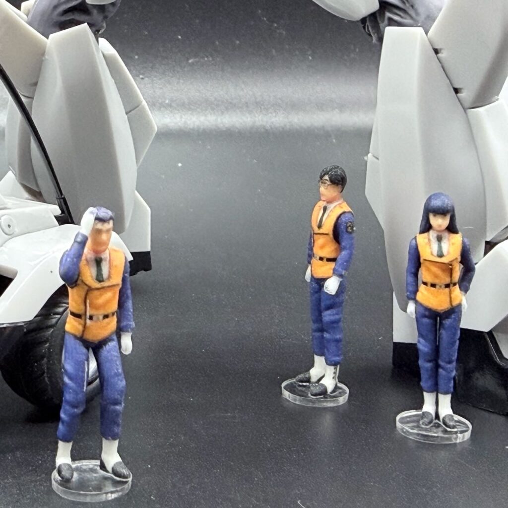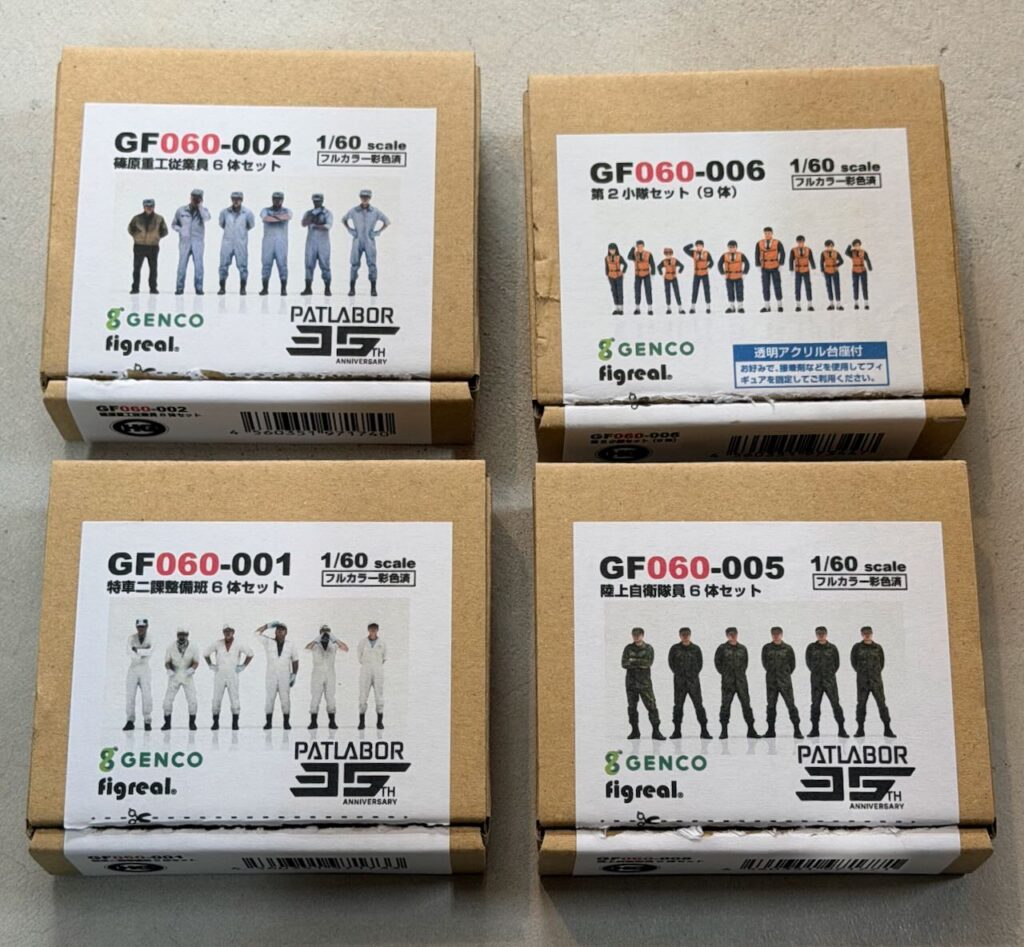 MODEROID のパトレイバーシリーズのスケールに合わせた1/60タイプ。レイバーと合わせられる1/60スケールの自動車や人物の模型ってほとんどない中で、バッチリそのままの人物フィギュア(しかも彩色済み)はありがたい。