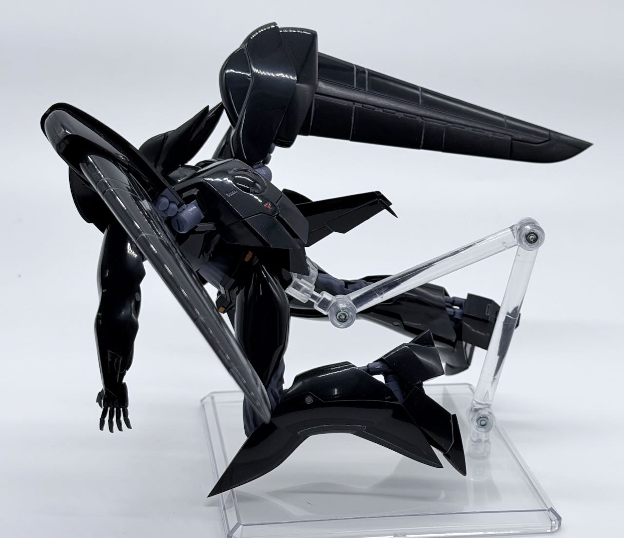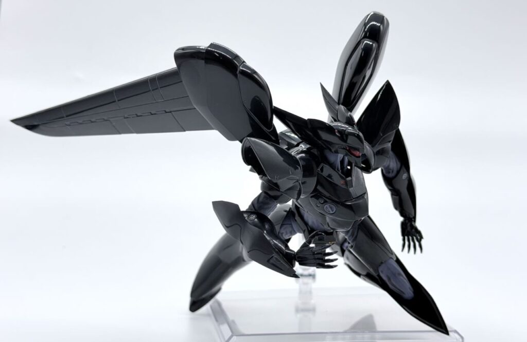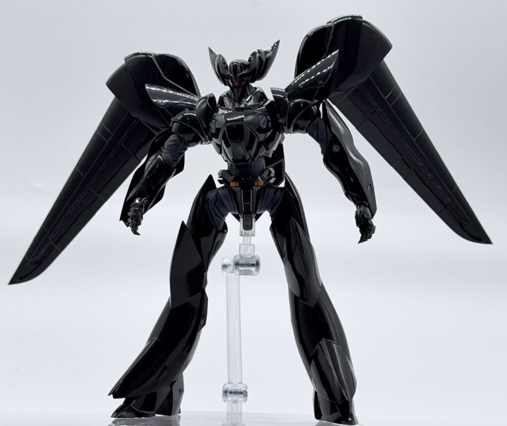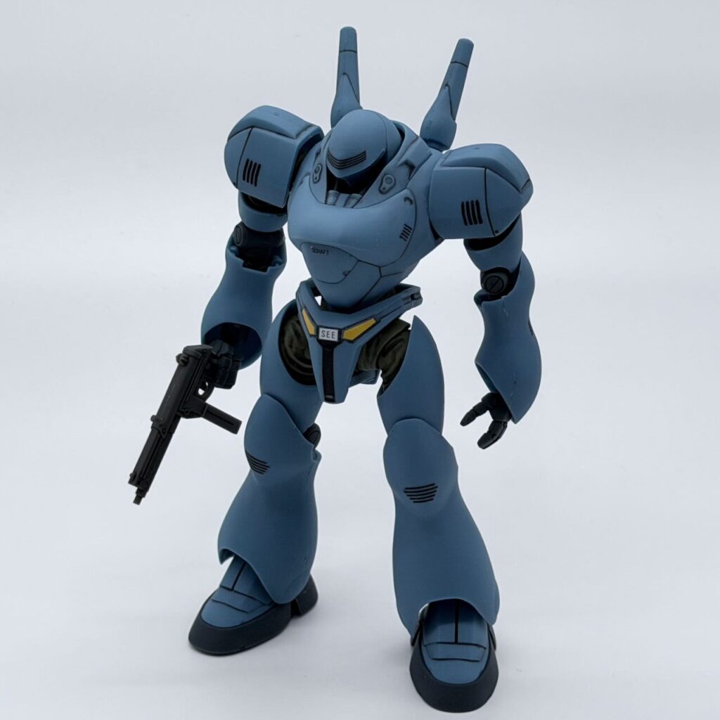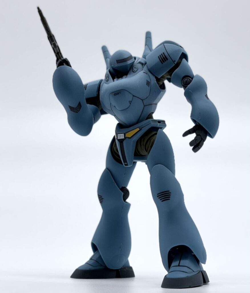 肩装甲の色分け、膝からふくらはぎにかけての色分けがパーツ分割でできているなかなかのすぐれもの。胸部のエアインテークとかちょいと部分塗装するだけでいい感じに仕上がる。